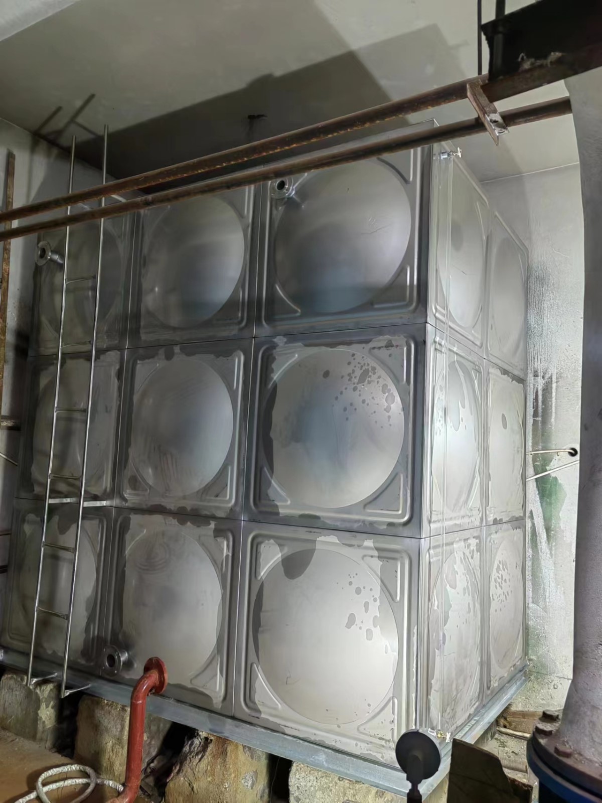 我司承接的內蒙古烏蘭察布市京熱(烏蘭察布)熱力有限公司下屬光輝站(133站,134站)不銹鋼焊接水箱安裝試水完成。不銹鋼全焊接水箱為現場組合方式,強度高、密封性好,防止水質二次污染,永不滲漏,重量輕,是普通鋼板水箱的二分之一,價格合理,外觀整潔、光亮、美觀、實用等特點。