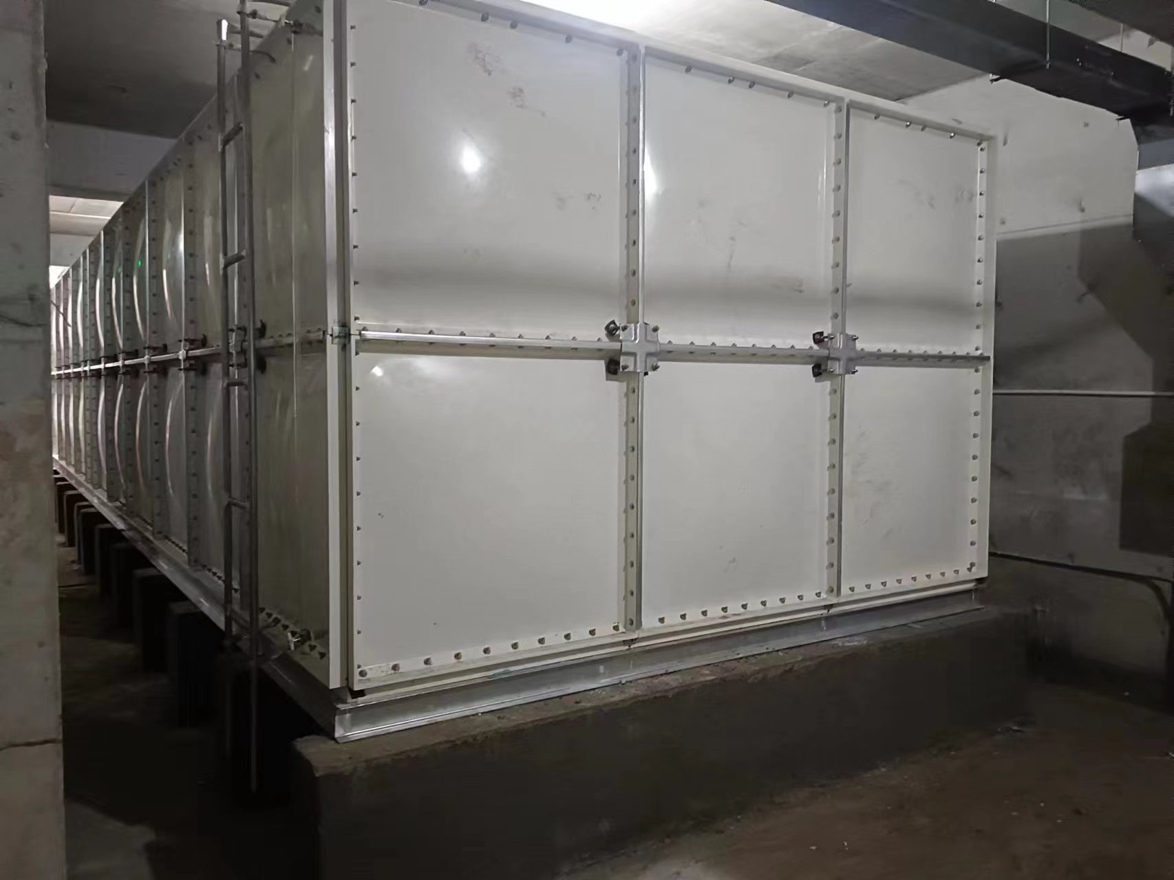 我司承接的河北省滄州市吳橋縣吳橋騰輝科技發展有限公司璃鋼消防水箱項目,已安裝試水完畢。SMC組合式玻璃鋼水箱是采用的新型水箱。由整體優質的SMC水箱板拼裝而成。其特點是采用不飽和樹脂,具有強度高,重量輕,耐腐蝕,外型美觀,使用壽命長,保養管理方便等特點。