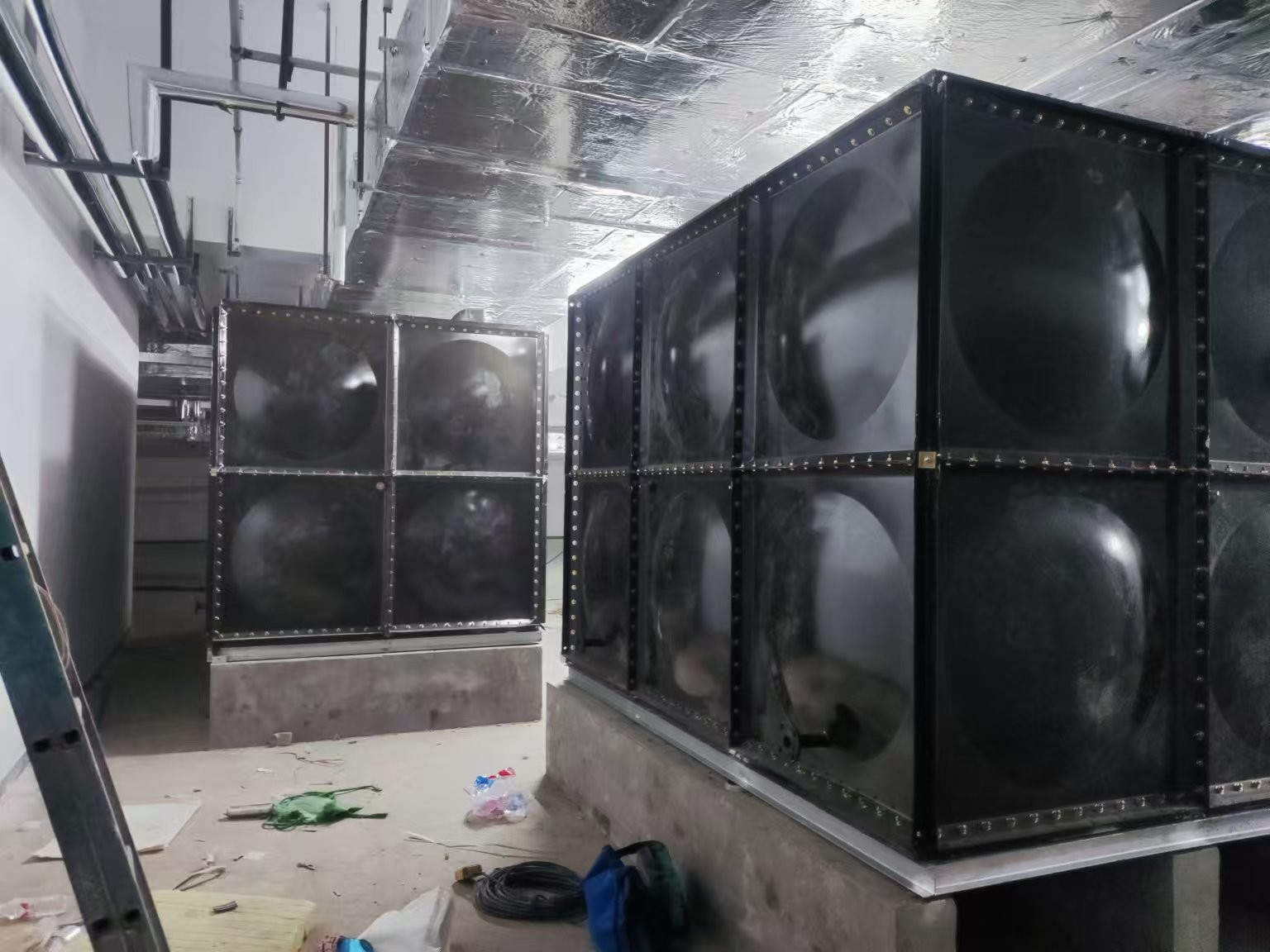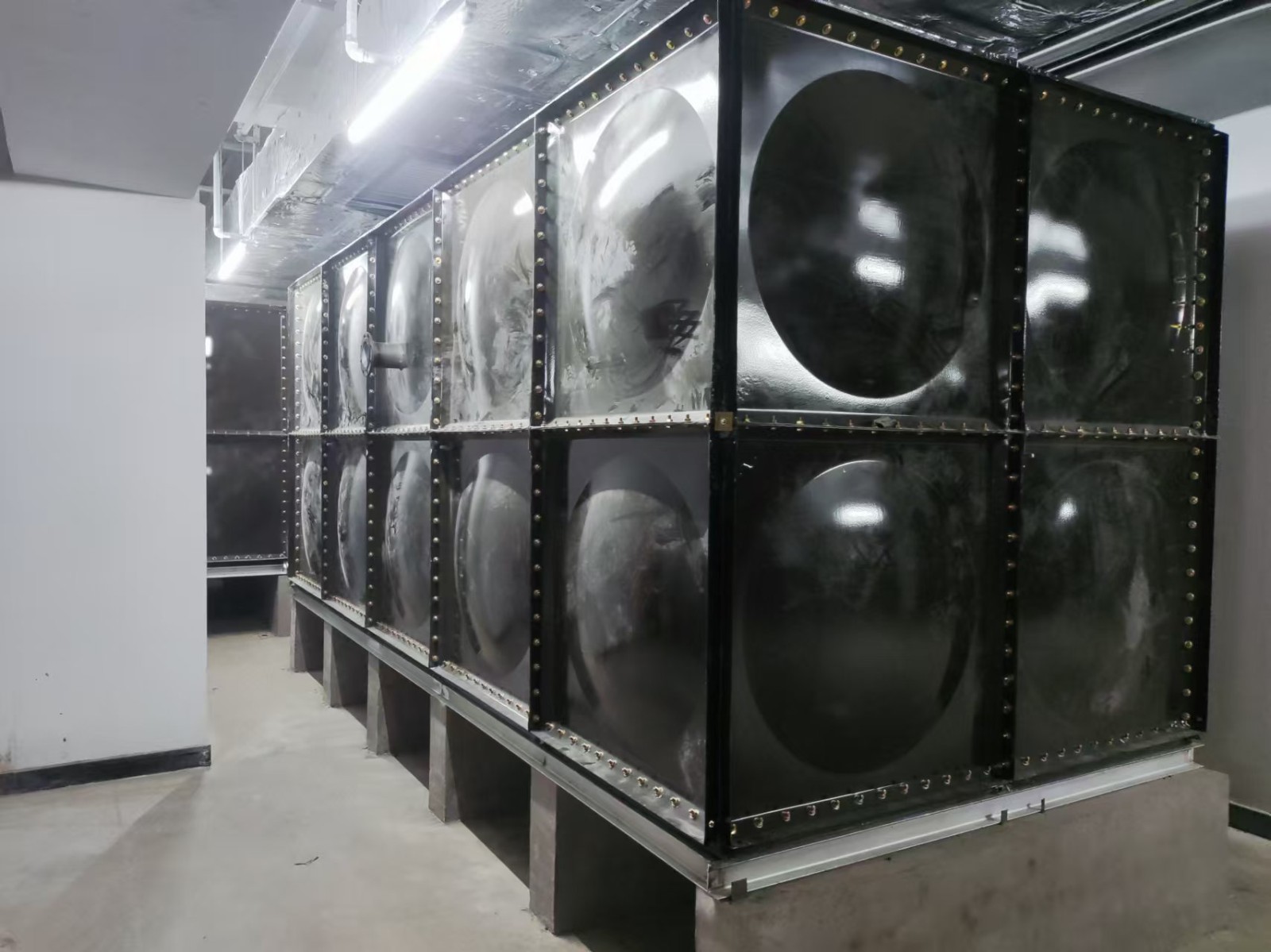 我司承接的山東濟南公安局人防項目,搪瓷鋼板水箱項目已安裝完成。搪瓷鋼板水箱的表面光滑,不易積聚污垢和雜質,這使得它易于清潔和維護?。搪瓷鋼板水箱的材料需經高溫燒結搪瓷,這樣能使水箱板面形成致密釉層,與鋼板界面離子之間互相滲透,混合形成厚度約200-300微米的擴散層,加大了搪瓷面的附著強度。另外,搪瓷鋼板水箱的瓷面光滑才容易清洗,且耐腐蝕,而鋼板組裝結構,不易變形、抗震性強、抗沖擊力大。