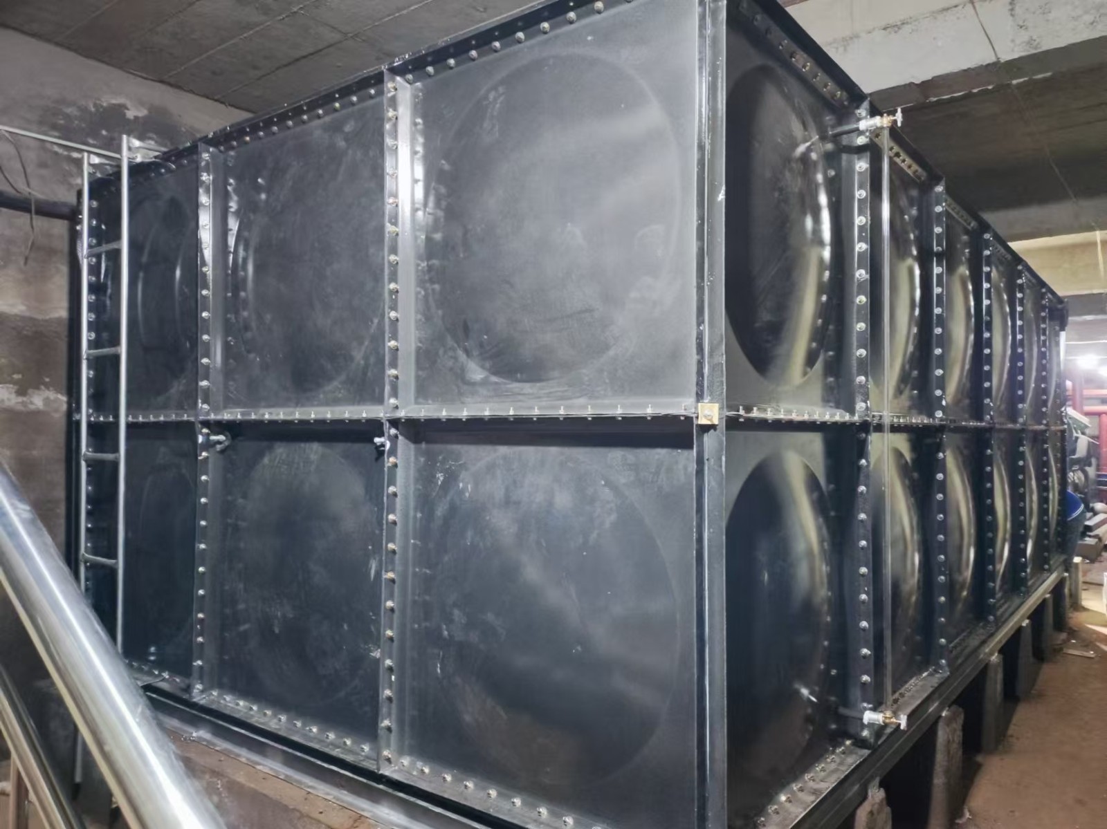 我司承接的河北省邢臺市寧晉縣東旺新村地下室生活飲用水項目,搪瓷鋼板水箱已安裝完成。搪瓷鋼板水箱的瓷面光滑容易清洗,耐腐蝕,而鋼板組裝結構,不易變形、抗震性強、抗沖擊力大。