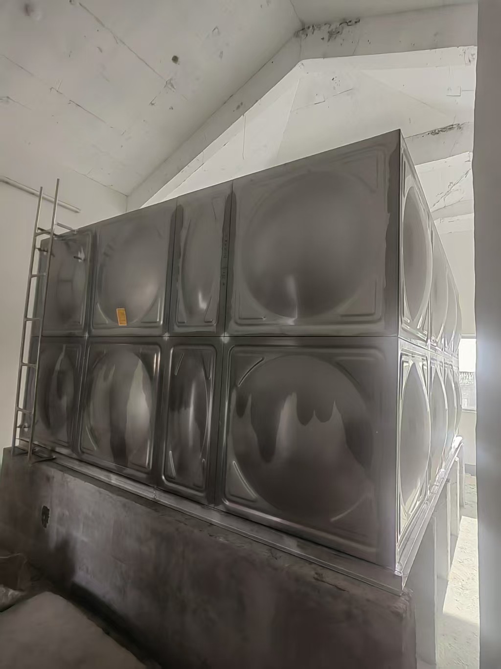 3. 不銹鋼水箱設(shè)置會將水滴上的露珠集中在水箱上,然后流到排水的地方,這樣可以防止槽鋼濕潤且不生銹。