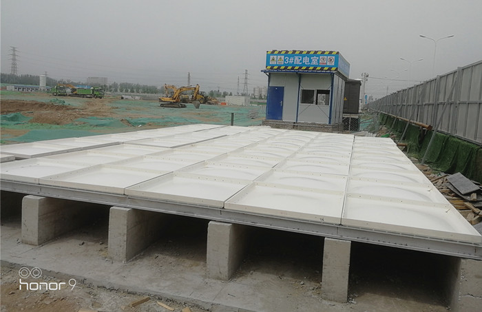 玻璃鋼聚氨酯彩鋼殼保溫水箱現場圖:客戶根據自己實際要求設置的條形基礎,安裝工人到達現場就可以直接焊接槽鋼底座,不耽誤工期。騰翔公司具有專業的安裝團隊,保障了安裝水箱的質量和效率。