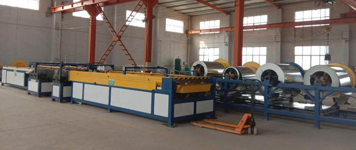 2、角鋼法蘭風(fēng)管大邊尺寸在630~1000mm時,直接在生產(chǎn)線壓筋加固,排列應(yīng)規(guī)則,間隔應(yīng)均勻,板面不應(yīng)有明顯的變形。